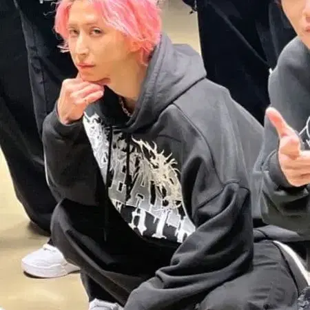 그래픽 프린트 블랙 후드티 BREATH 사쿠마 다이스케 착용