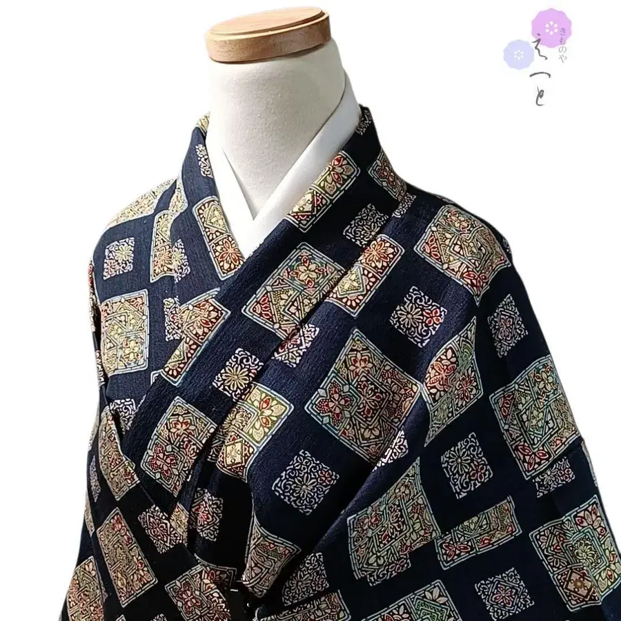 32 기모노 순수 실크 이중 기모노 파랑 코몬