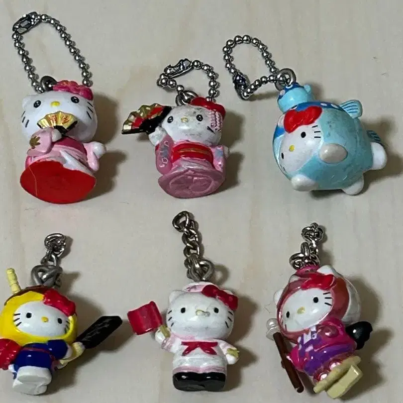 헬로키티 키링 폴 체인 6개 세트 묶음 판매 레트로