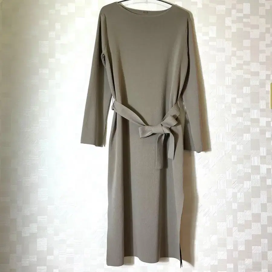 미아 오웬 허리 벨트 니트 롱 원피스 * 베이지 색상