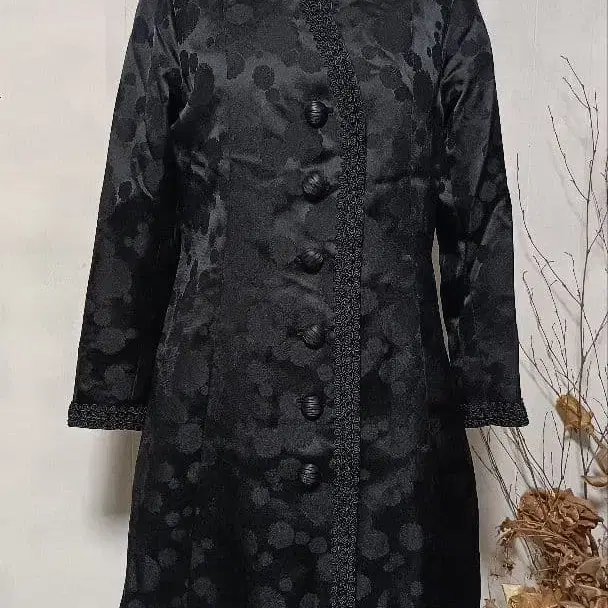 • 블랙 롱 코트 비쥬 버튼 퍼 포함