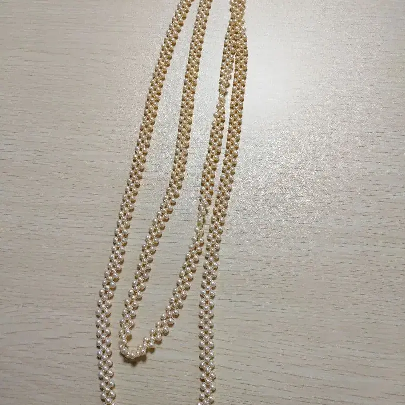 크림색 펄 롱 목걸이