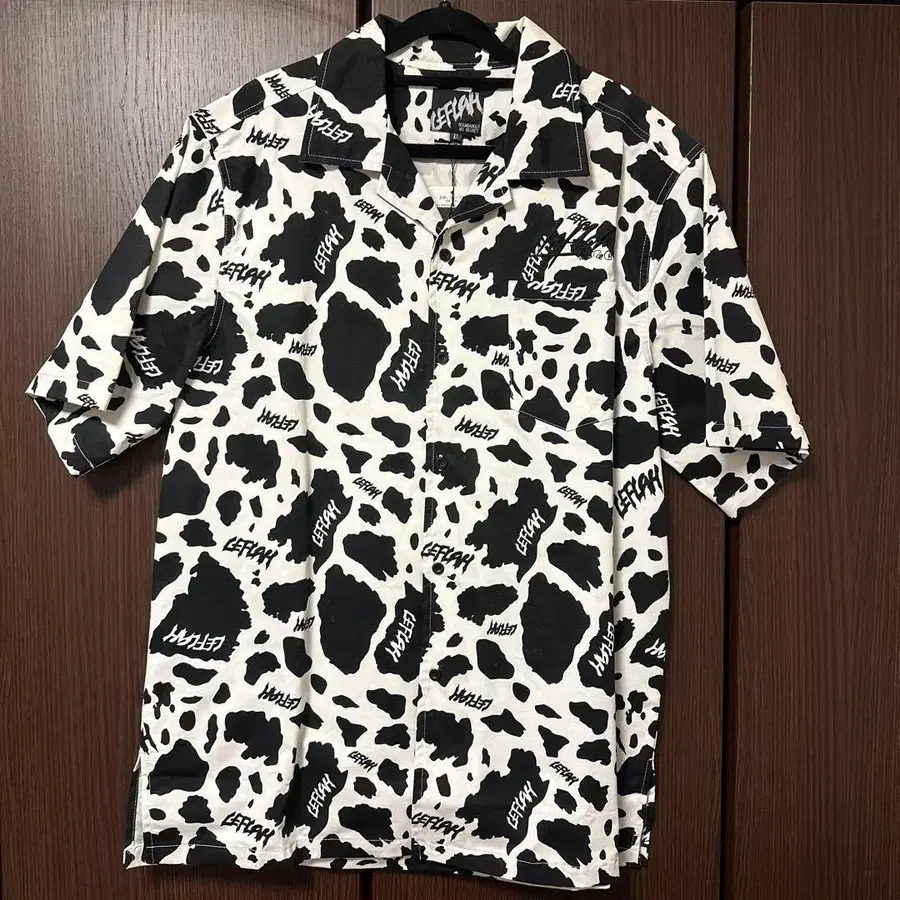 LEFLAH 소 패턴 오픈 카라 셔츠 XL