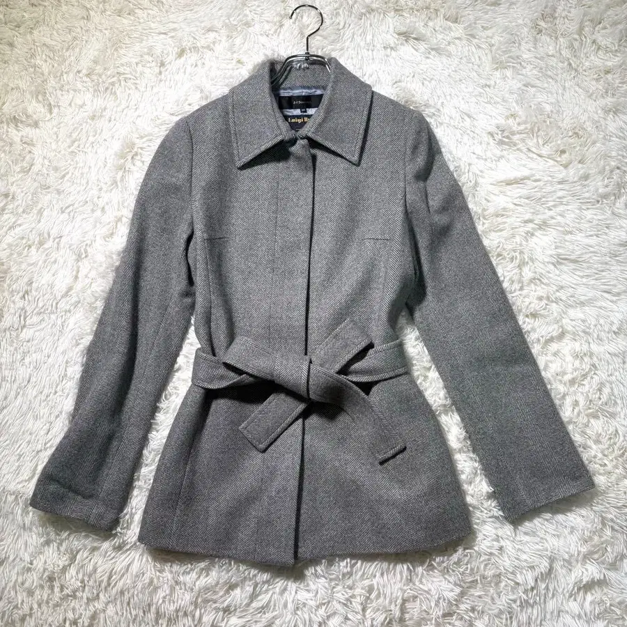 7-IDconcept 울 코트 M 그레이 헤링본 A라인 벨트