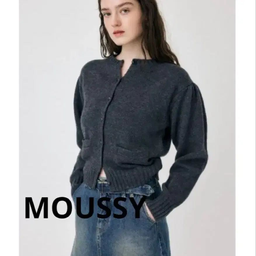 • moussy 마우지 퍼프 슬리브 버튼 업 가디건