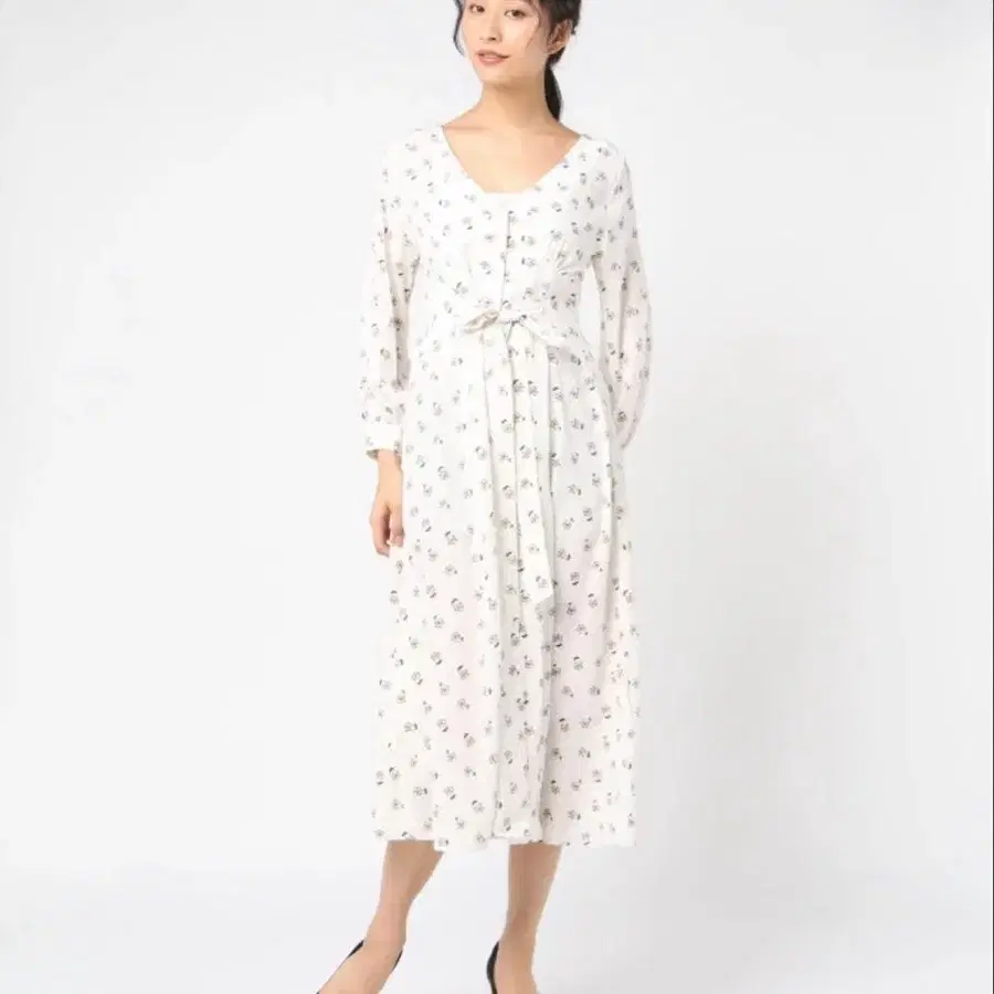 정가 7040엔 미사용 새상품 꽃무늬 도트 긴팔 원피스 M