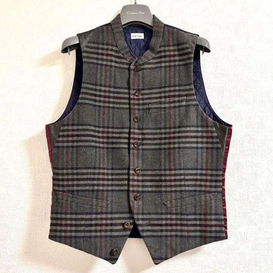 새상품급 폴스미스 체크 무늬 지레 베스트 M 실크 큐프라 사용 레어