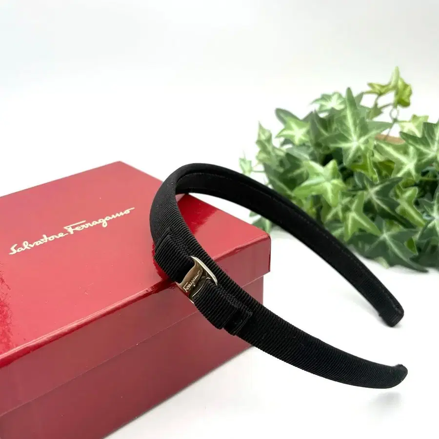 [ 새상품급 ] 페라가모 바라 리본 머리띠 블랙 골드 금장 장식