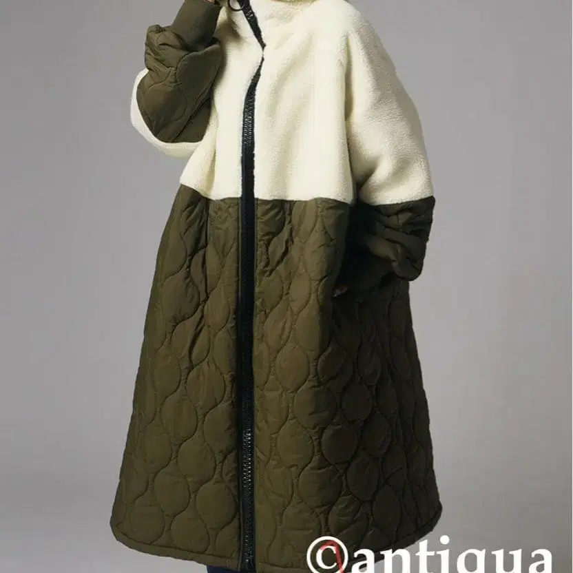 antiqua 플리스 퀼팅 롱 코트