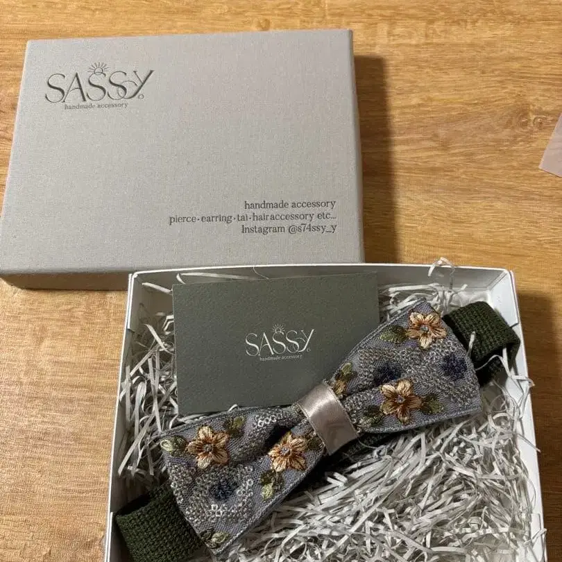 SASSY 꽃무늬 자수 나비 넥타이 블루 그린