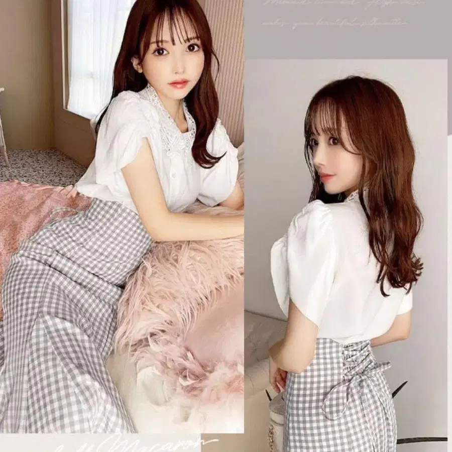 새상품급 미셸 마카롱 깅엄 체크 성인 슬림 레그 스커트