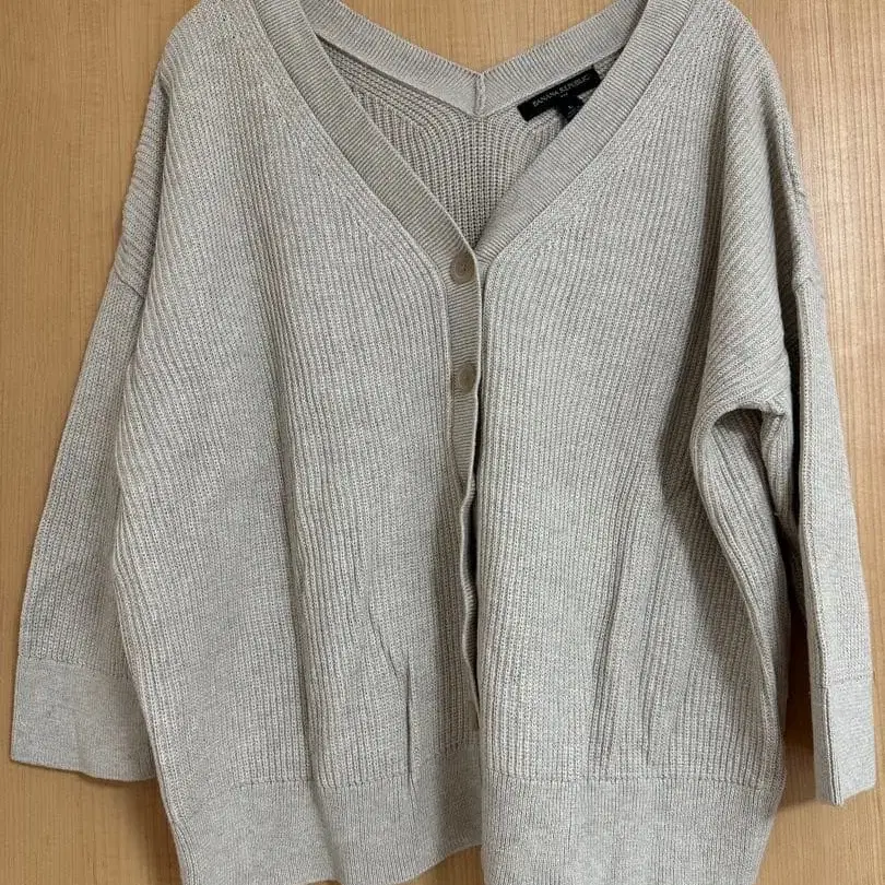 아이보리 V넥 리브 니트 가디건 BananaRepublic