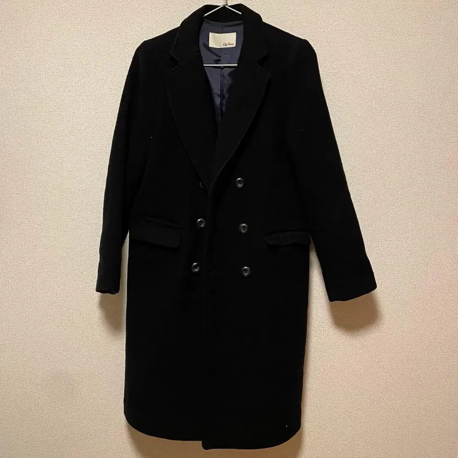 Lily Brown 블랙 더블 브레스트 롱 코트