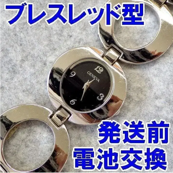 반지형 팔찌 GENEVA 여성용 손목시계 실버/블랙