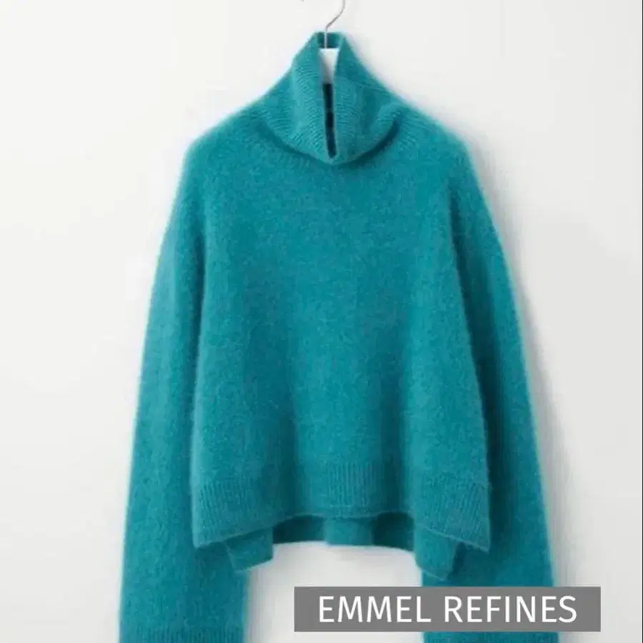 헤어리하고 페미닌한 인상의 실 사용, 숏 기장의 몸통에 롱 슬리브의 밸런스가 여성스러운 마무리. 적당히 여유로운 내추럴한 터틀넥.