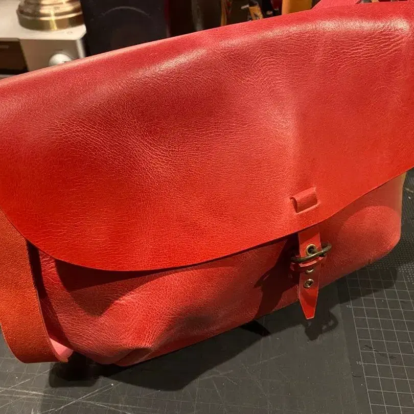 빨간색 가죽 플랩 숄더백 천연 가죽 손바느질 남녀 공용