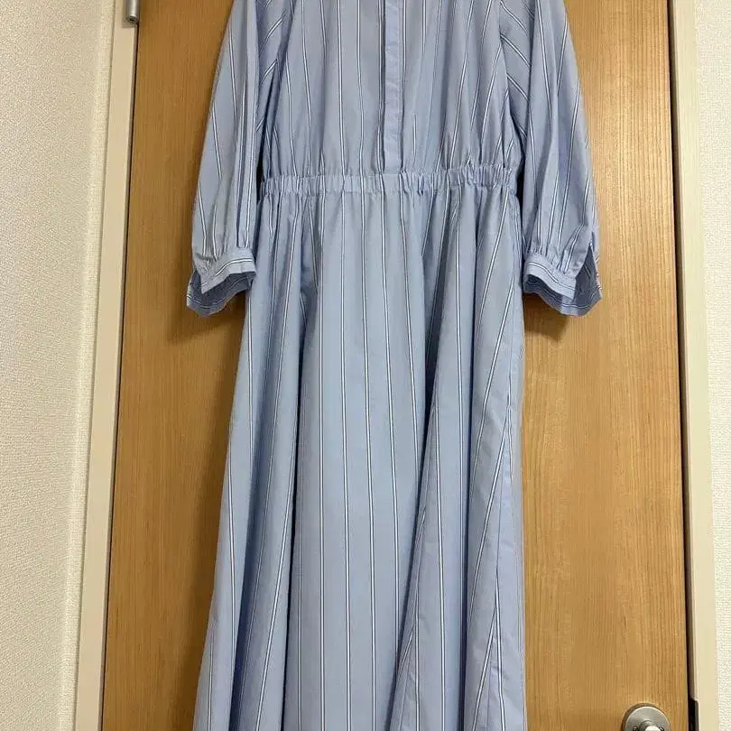 스카이블루 스트라이프 긴팔 셔츠 원피스