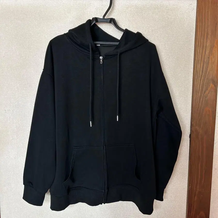블랙 집업 후드티 후드 부착