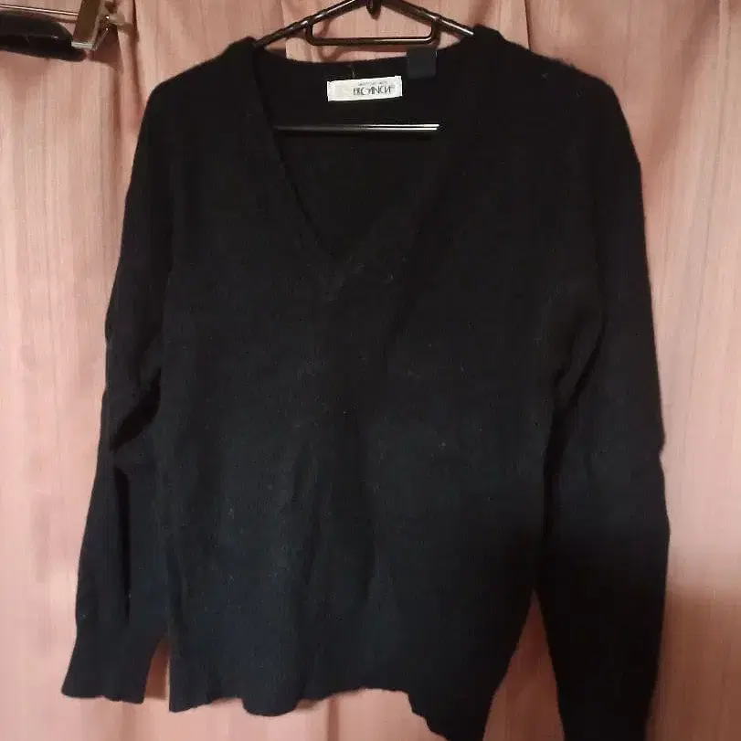 램스울 100% 블랙 V넥 스웨터 긴팔 스쿨 니트
