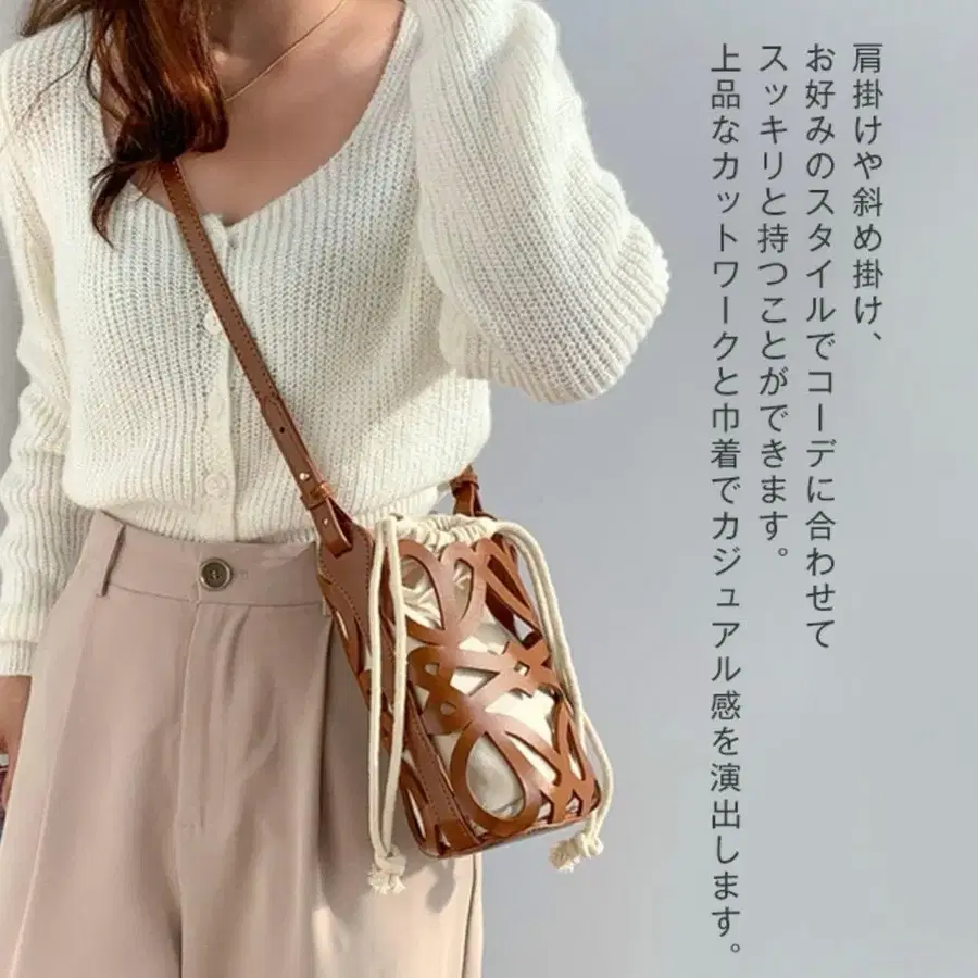 브라운 컷 아웃 디자인 숄더백 인조 가죽