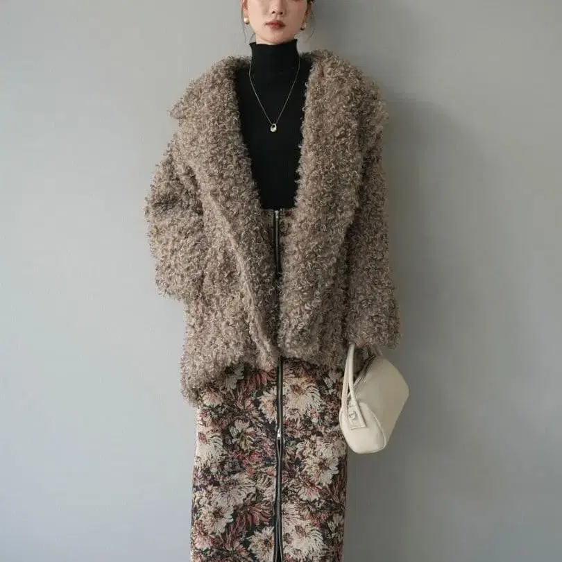lumier 완판템 새상품 푸들 퍼 더블 미들 코트 / beige