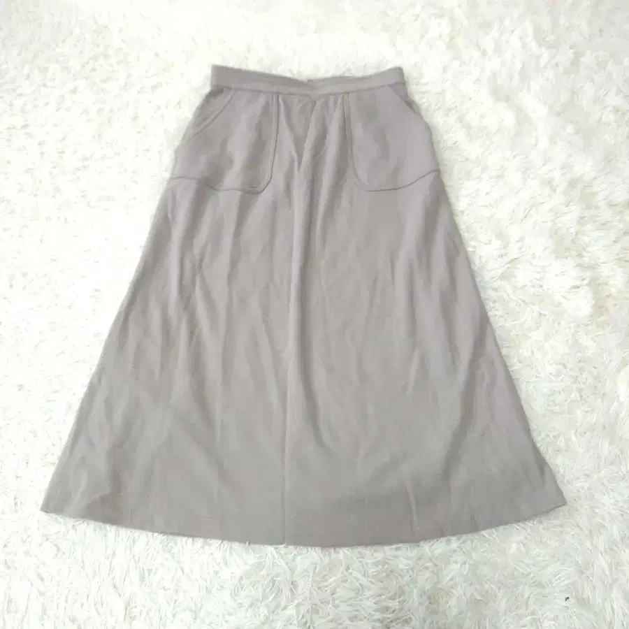☑ 상품: 그레이 색상의 플레어 스커트, 사이즈 3, 울 100% 소재로 편안한 착용감.