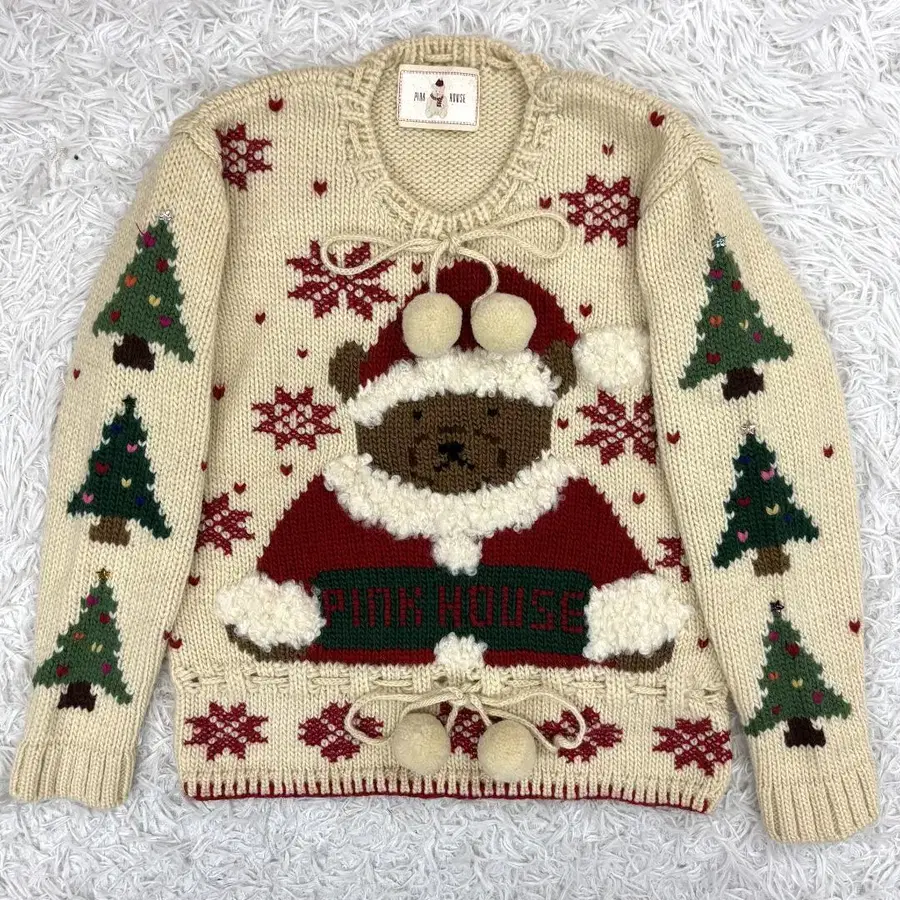 자동 번역되었어요. 원문보기PINK HOUSE의 겨울 한정 아이템, 아이보리 베이스에 산타 곰이 짜인 레어 니트 스웨터. 소매에는 비즈가 달린 크리스마스 트리, 밑단과 옷깃에는 복슬복슬한 폼폼이 흔들리는, 마치 그림책 속 세상에서 튀어나온 듯한 한 벌.