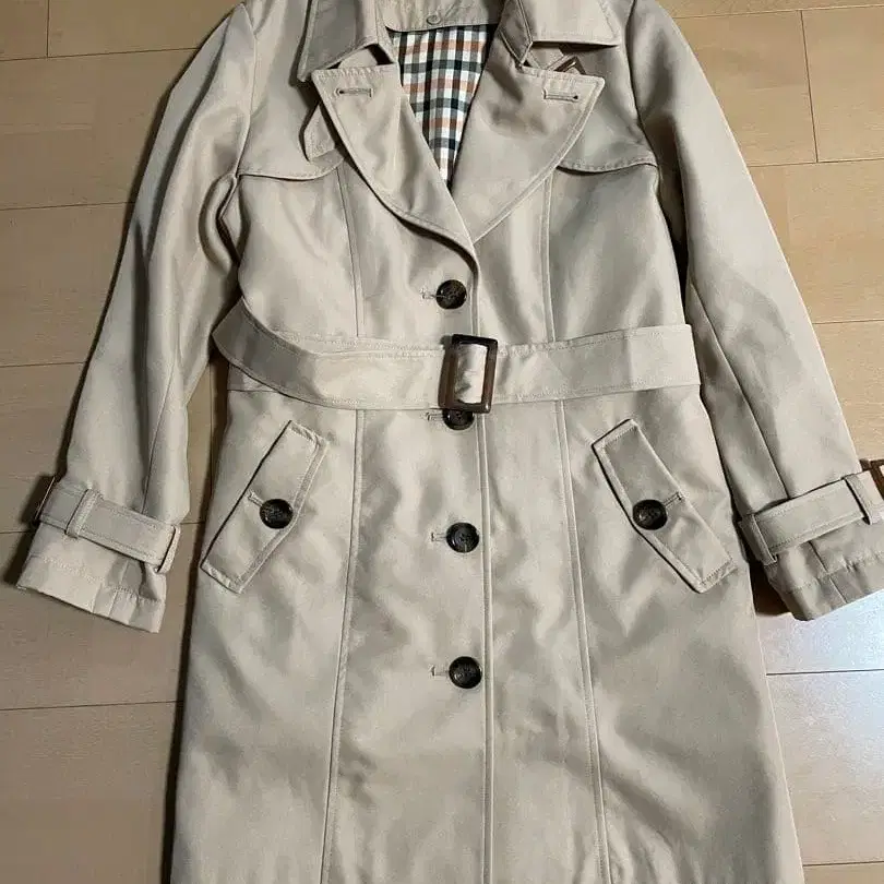 푸치조 PM 베이지 트렌치코트 체크 안감 부착