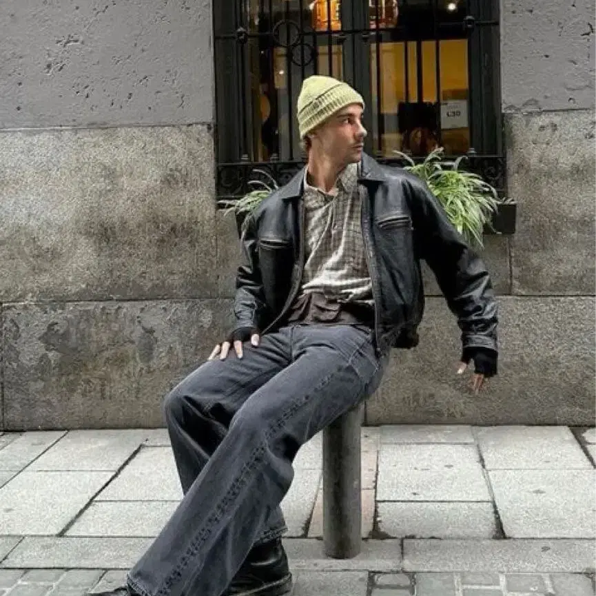 90's unknown 짧은 기장 가죽 자켓 City boy