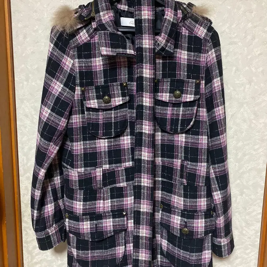 체크 무늬 후드 부착 자켓