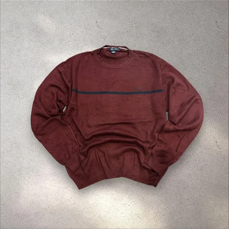 [컨디션 최상] NAUTICA 노티카 코튼 니트 보르도 자수 로고