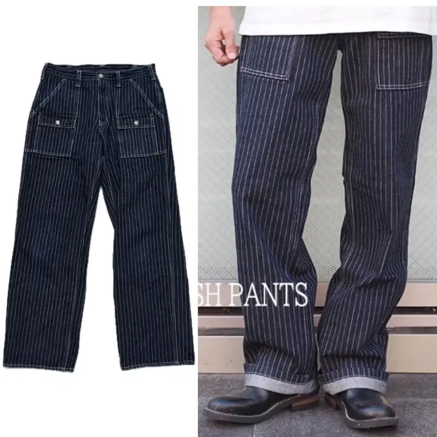 코지마 진스 다크 네이비 카고 팬츠 워바쉬 부시 데님 W32