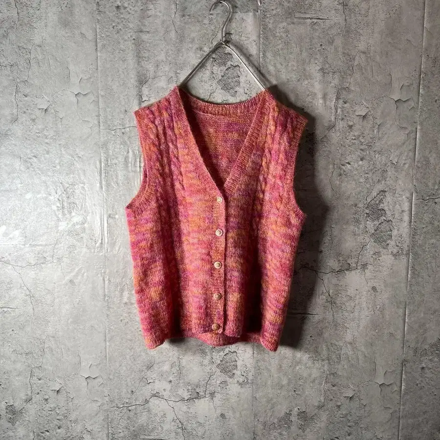 구제 모헤어 베스트 레트로 더스티 컬러 핑크 M~L 단추식 개성있는