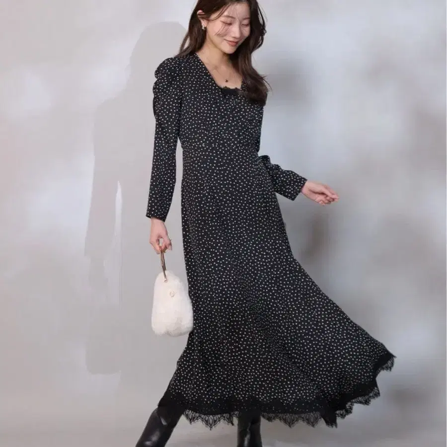 Apuweiser-riche 도트 불규칙 헴 원피스