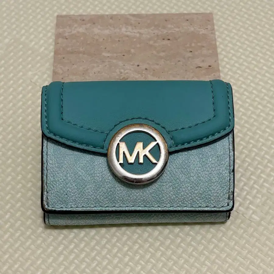 라이트 블루 색상의 합성 피혁 소재 3단 폴더형 지갑, 카드 포켓 부착. - 브랜드: Michael Kors - 색상: 라이트 블루 - 소재: 합성 피혁 - 디자인: 3단 폴더형 지갑 - 내부: 카드 포켓 있음 얼룩이 있습니다. 사진을 확인해 주세요. 상자 등은 없으므로 에어캡으로 포장합니다.