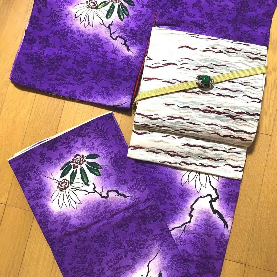 앤티크 순수 실크 코몬 보라색에 안개가 뜬 침정화