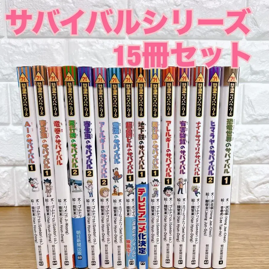 즉시 구매 OK / 익명 배송 인기 과학 만화 서바이벌 시리즈 15권 세트입니다. AI, 자연재해, 인체, 탈것 등 폭넓은 테마로 즐겁게 배울 수 있는 학습 만화입니다. 아이들의 독서나 자유 연구에도 추천합니다. [ 세트 내용 ] 1. AI의 서바이벌 1 2. 기생충의 서바이벌 1 3. 토네이도의 서바이벌 1 4. 비행기의 서바이벌 2 5. 기생충의 서바이벌 2 6. 알레르기의 서바이벌 2 7. 급류의 서바이벌 8. 초고층 빌딩의 서바이벌 1 9. 지하철의 서바이벌 1 10. 비행기의 서바이벌 1 11. 알레르기의 서바이벌 1 12. 유해 물질의 서바이벌 13. 나이트 사파리의 서바이벌 1 14. 히말라야의 서바이벌 2 15. 공룡 세계의 서바이벌 1 [ 상태 ] 독서에 지장을 줄 만한 큰 찢김이나 심한 데미지는 없습니다. 중고 도서이므로, 노후화에 따른 일광화상, 스크래치, 얼룩, 접힘 등은 양해 부탁드립니다. 중고품에 이해가 있는 분만 구매 부탁드립니다. 궁금한 점이 있다면 편하게 댓글 남겨주세요.