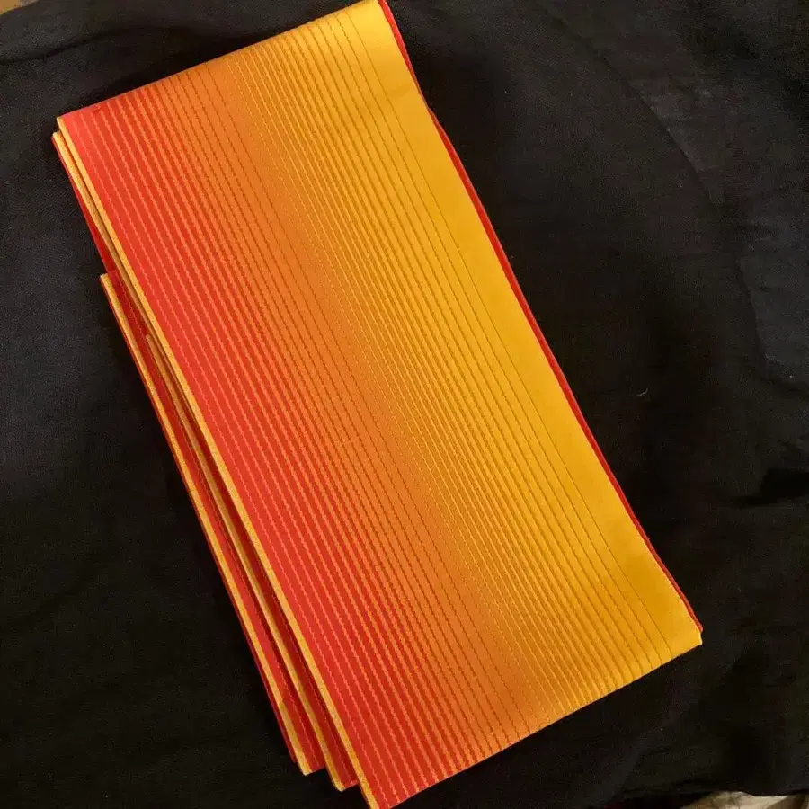 키류 직물 그라데이션 스트라이프 리버서블 반폭 오비 오렌지와 옐로우 컬러
