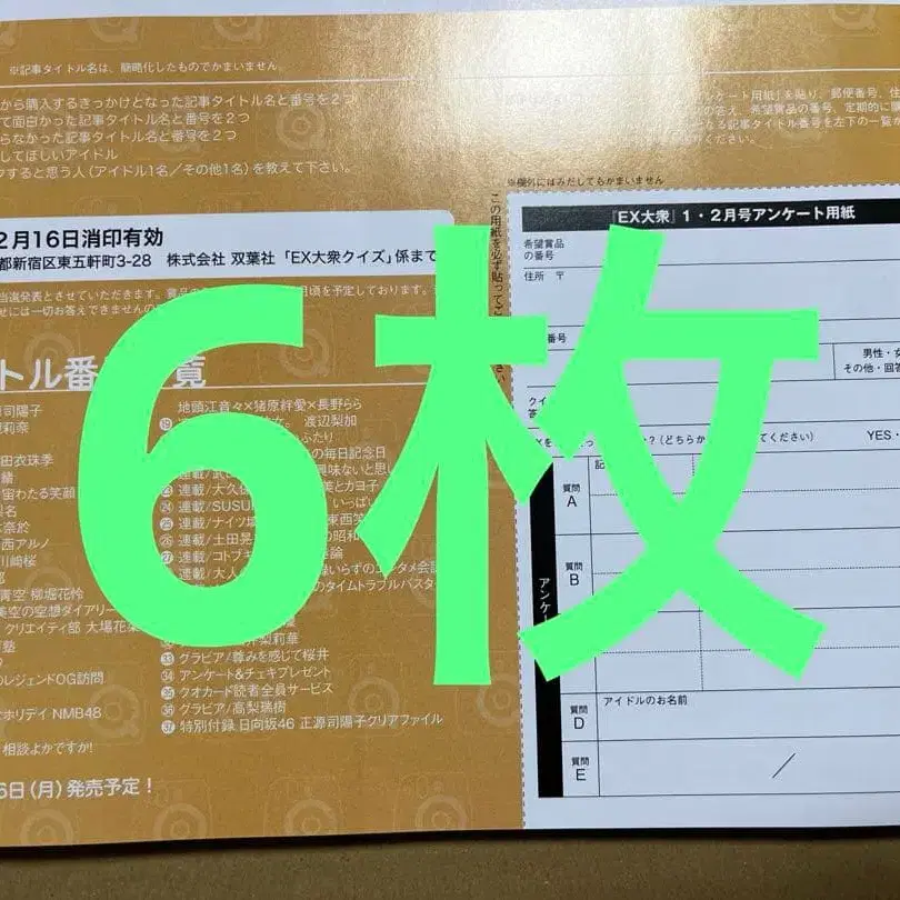 EX 대중 2026년 1월 2월호 응모권 6장 쇼겐지 요코 ver