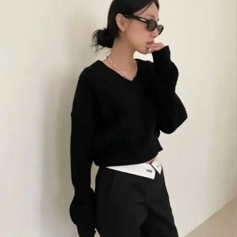 didot.showroom 리브 V넥 블랙 스웨터 FREE 사이즈