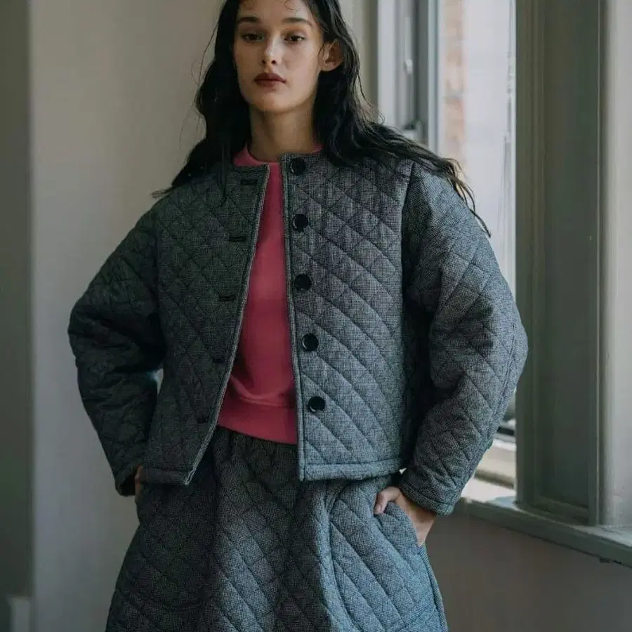 미사용 린카블 LINKABLE 하운드투스 체크 퀼트 자켓