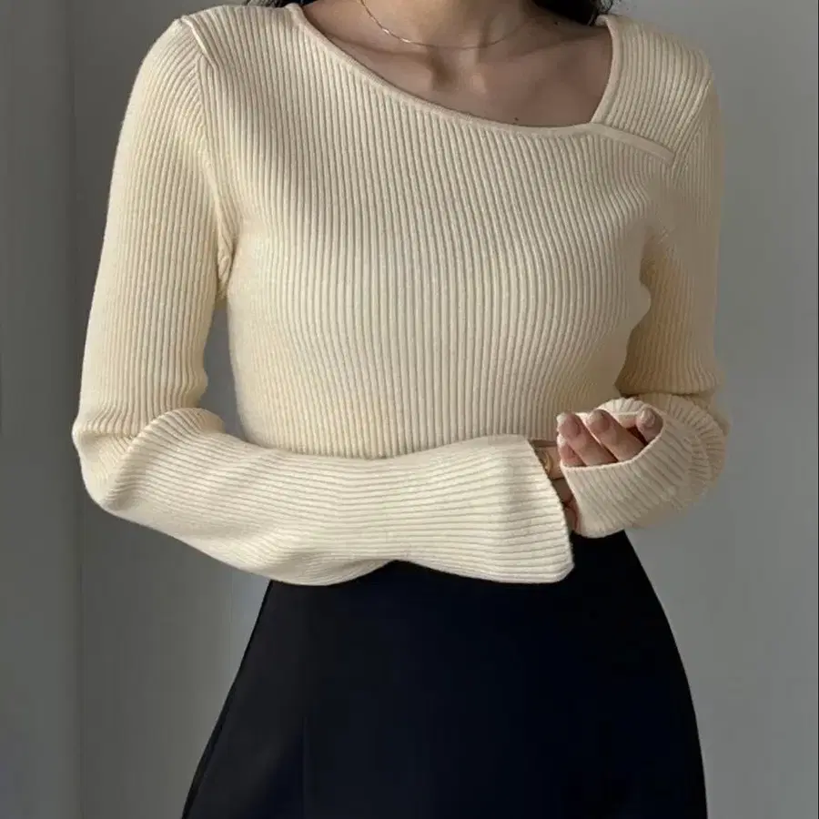 Louere 아시메 넥 리브 니트