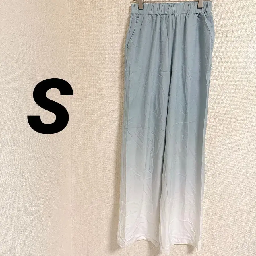 자동 번역되었어요. 원문보기파랑에서 화이트로 이어지는 그라데이션 디자인의 허리밴딩 팬츠.