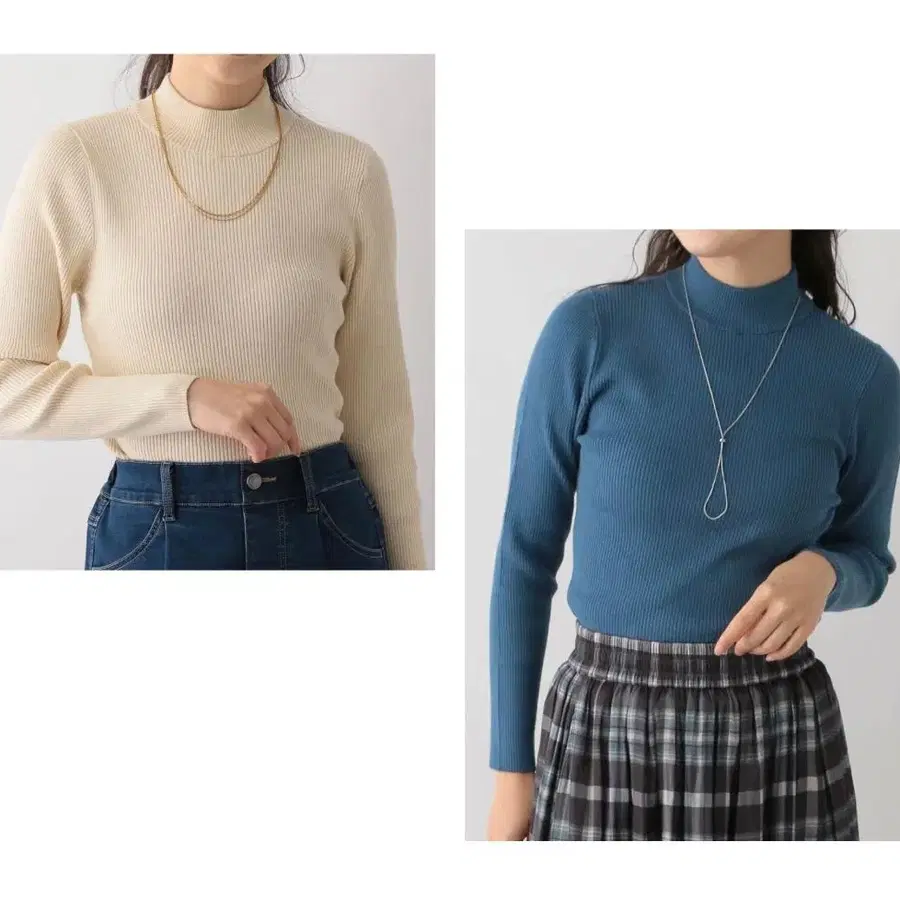 새상품 글로벌 워크 매끄러운 리브 하이넥 2장 세트 아이보리 & 블루 S