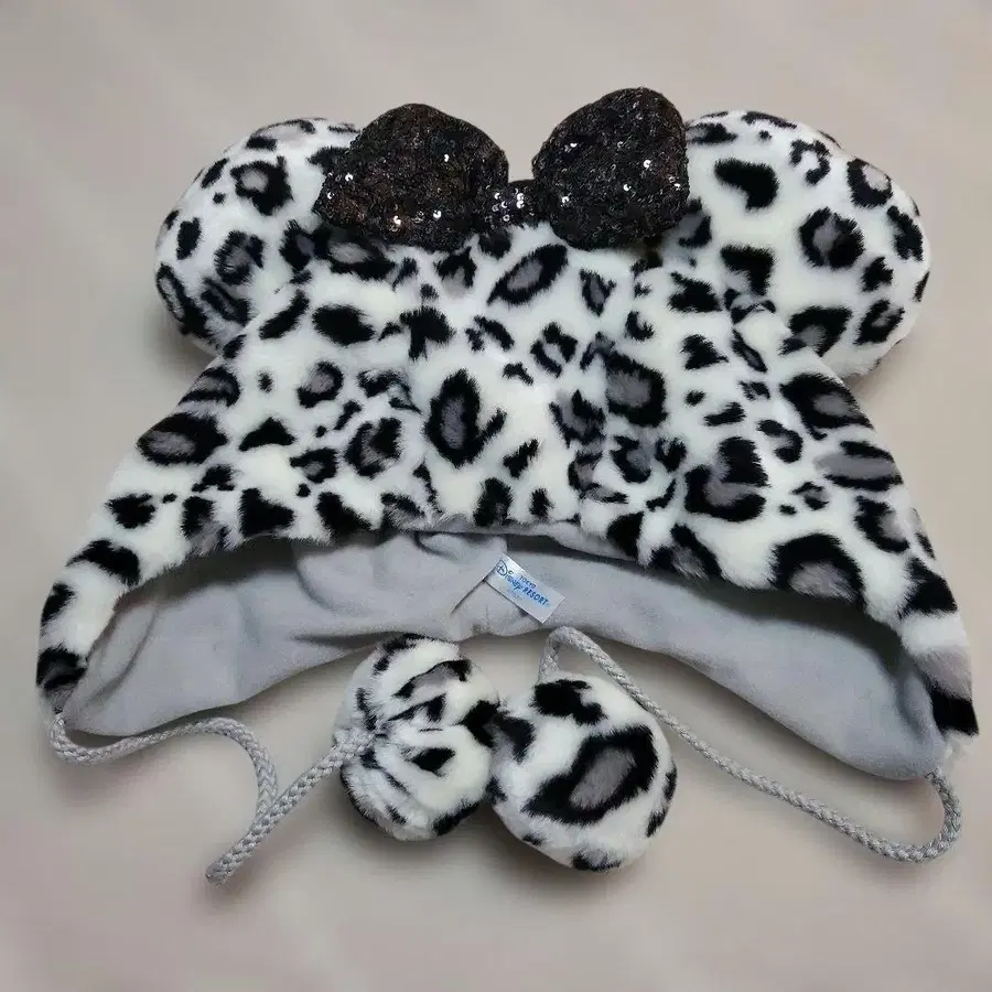 디즈니 팬캡 레오파드 무늬 플리스 모자 블랙 리본 포함