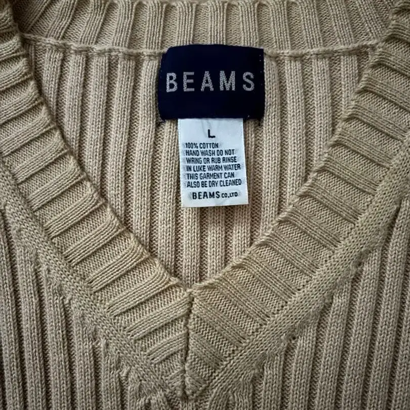 BEAMS 빔즈 90년대 코튼 니트 베스트 베이지 구제 의류 새상품급