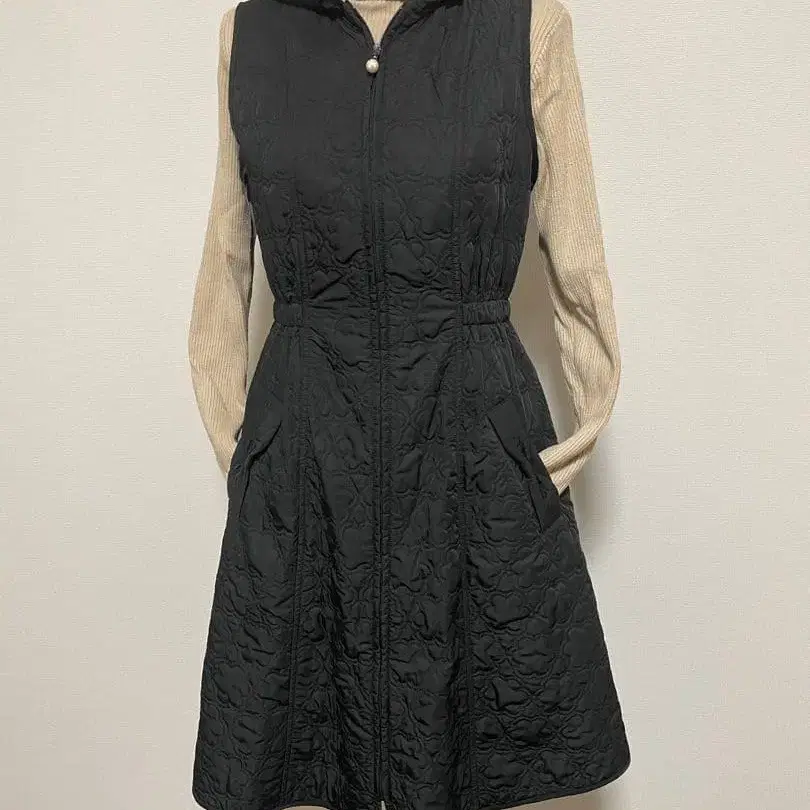 후드 부착 블랙 퀼팅 베스트, 원피스 2way