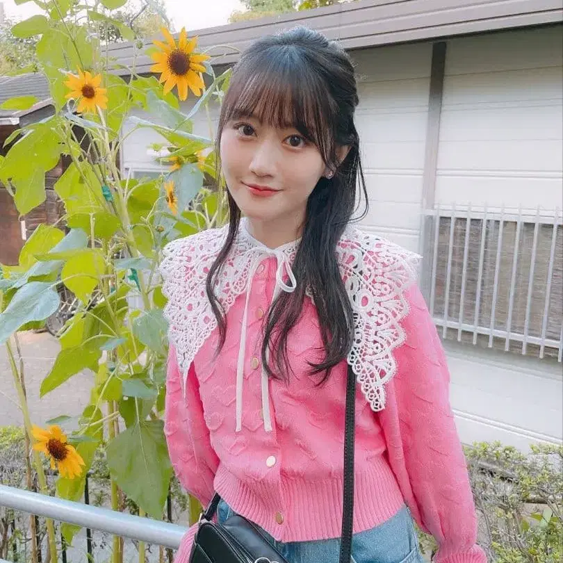 오구라 유이 착용 니트 셋업 핑크