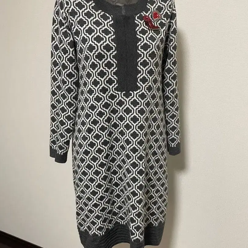 니트 원피스 블랙과 화이트의 기하학 패턴