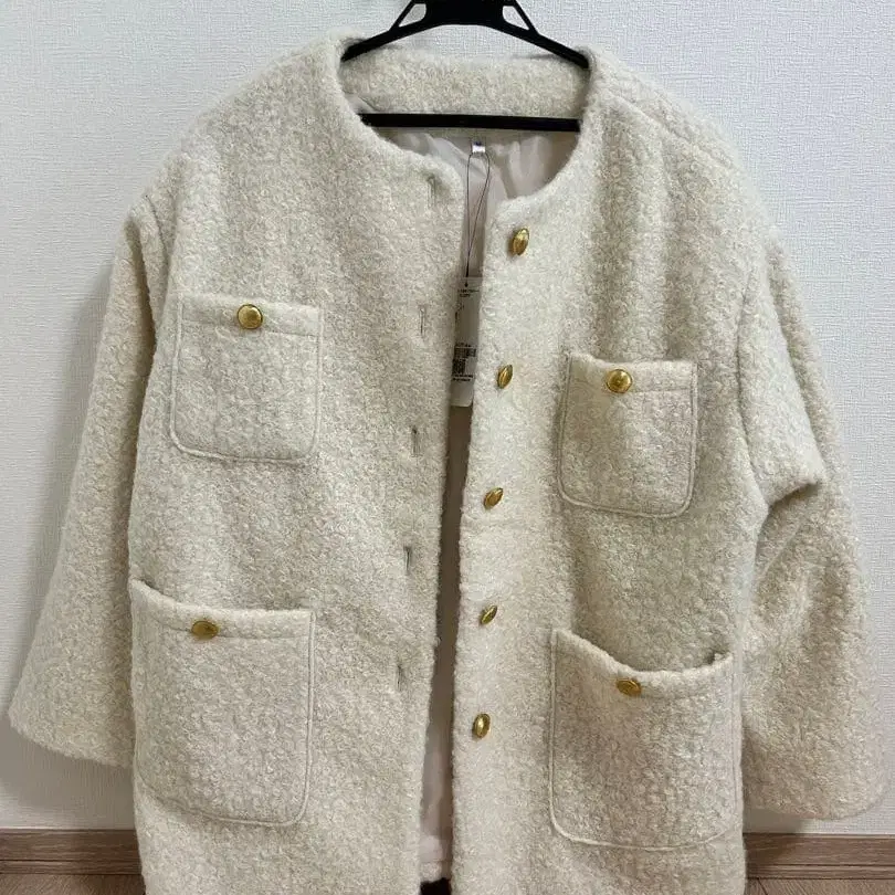 코카 택 포함 미사용 새상품 푸들 금장 버튼 노카라 코트 M 화이트